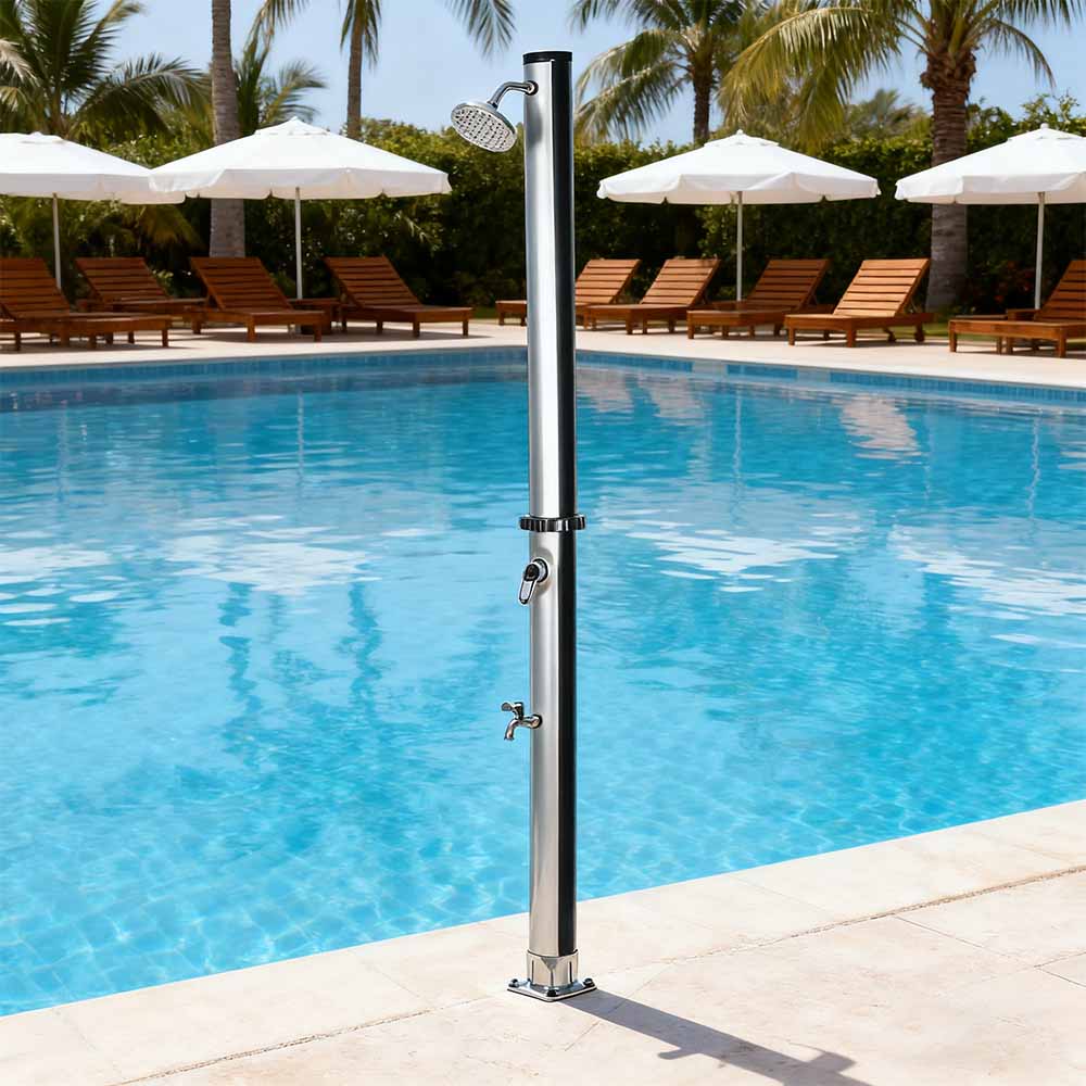 Direka bentuk untuk keselesaan luar, lajur pancuran mandian suria pvc taman luar LY18L01 18L dengan tapak ini sesuai untuk taman, kawasan tepi kolam dan perkhemahan, mewakili salah satu inovasi terkini dalam pemanasan air tanpa input tenaga luaran. Ia membolehkan kawalan mudah suhu air melalui pengadun tuil tunggal yang menggabungkan air paip pancuran mandian yang dipanaskan dengan air hos sejuk, memastikan pengalaman yang selesa. Dibina dengan tapak PVC tahan lama untuk kestabilan dan sokongan yang boleh dipercayai, ia juga mempunyai kepala pancuran hujan yang besar dengan sudut boleh laras 180° melalui sambungan bebola bersepadunya, memberikan kesan penyejukan yang menyegarkan. Persediaan adalah pantas dan mudah, menjadikannya tambahan yang mudah untuk pelbagai tetapan luar.