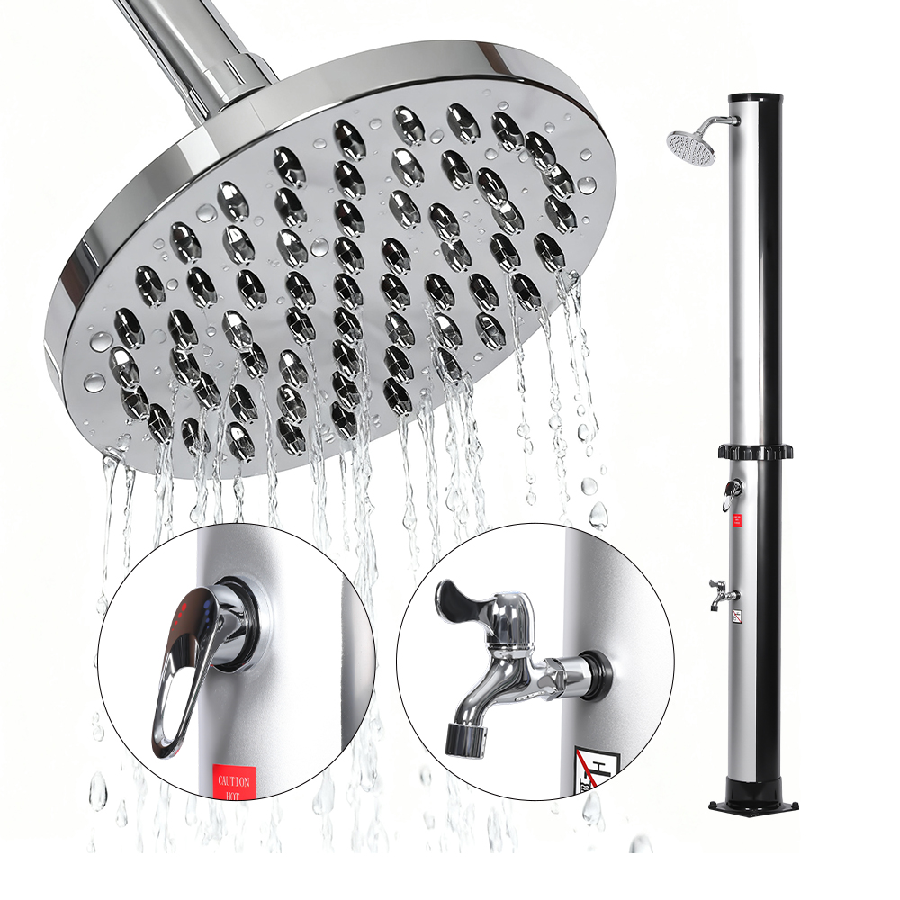 Pancuran suria boleh laras dan kalis air LY35L02-CR ini menggabungkan kepraktisan dengan keselesaan, menampilkan paip pancuran mandian besar yang memanaskan sehingga sekitar 60°C hanya menggunakan cahaya matahari, menghapuskan keperluan elektrik. Hanya pasangkan hos taman biasa untuk mengisi paip pancuran mandian, memudahkan seisi keluarga menikmati pancuran mandian luaran yang menyegarkan di taman, di tepi kolam renang atau semasa berkhemah. Dulang logam yang selesa memastikan keperluan mandi seperti sabun atau syampu mudah dicapai, manakala saluran longkang yang direka dengan teliti di bahagian bawah menghalang air daripada terkumpul, memastikan kawasan itu bersih dan selamat. Menambah keselesaan, kepala pancuran boleh laras membolehkan kawalan pancutan air yang fleksibel, membolehkan anda menyesuaikan aliran mengikut keutamaan peribadi anda. Semburan gaya hutan hujannya memberikan pengalaman mandian yang menenangkan dan berasa semula jadi, mengubah setiap bilas menjadi saat bersantai.